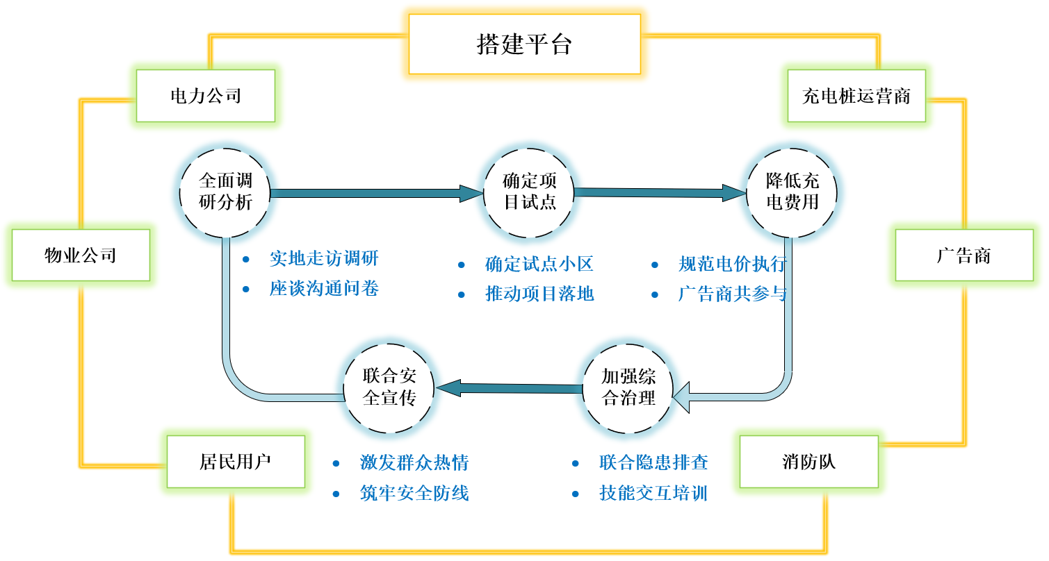 聚焦充電樁建設(shè)、運(yùn)營運(yùn)維、費(fèi)用透明等重點(diǎn)難點(diǎn),識(shí)別并引入街道社區(qū)、物業(yè)、消防隊(duì)、充電站運(yùn)營商、廣告商等利益相關(guān)方,充分考慮各方訴求、期望,推動(dòng)各方自愿融入、合作共贏,發(fā)揮各方管理優(yōu)勢(shì)、服務(wù)優(yōu)勢(shì)、技術(shù)優(yōu)勢(shì)。